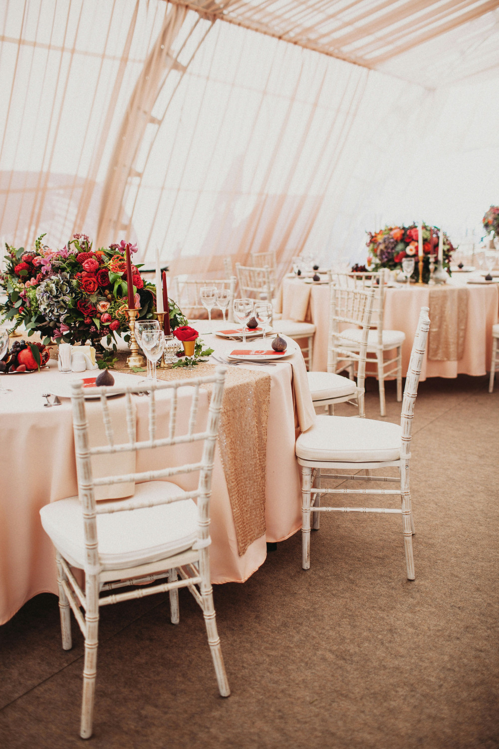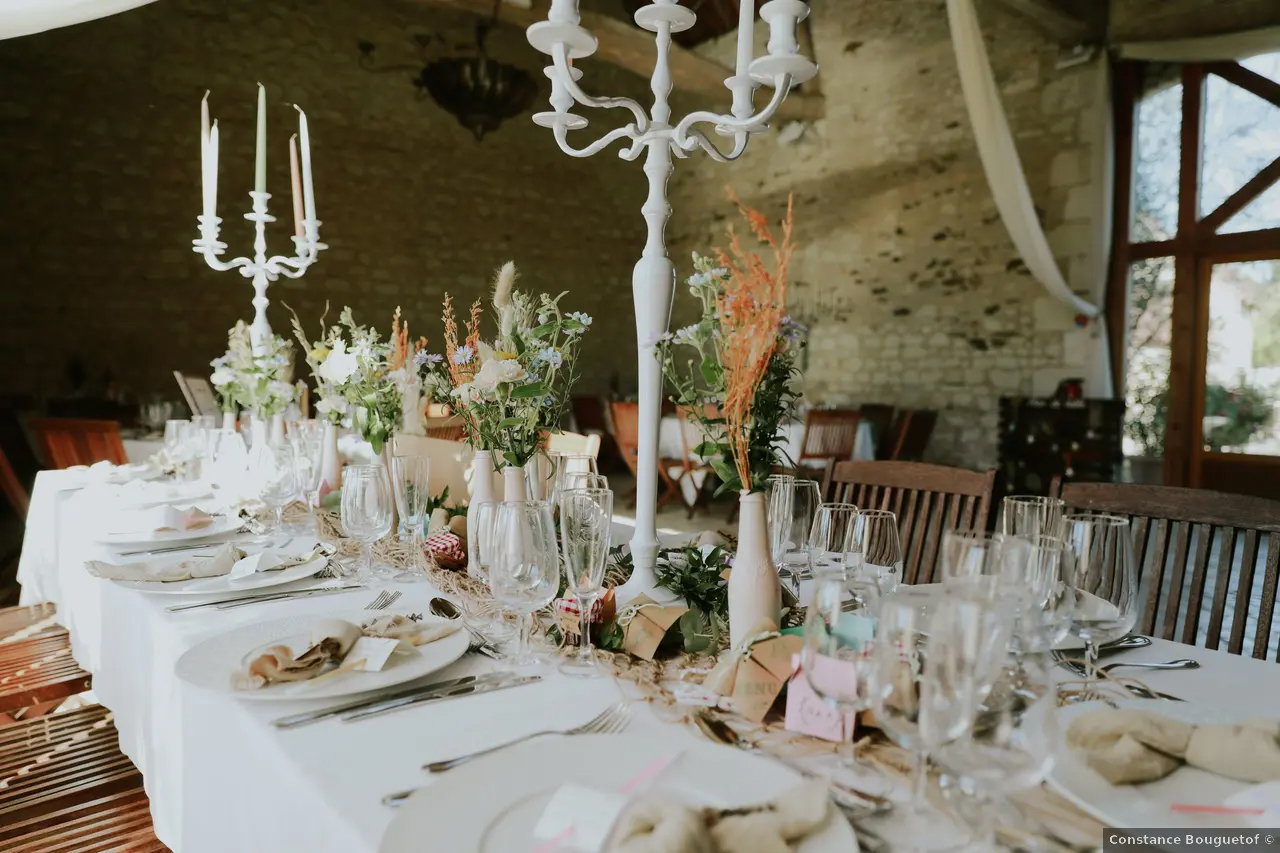 Dressage des tables que vous aurez préalablement nappées et disposées